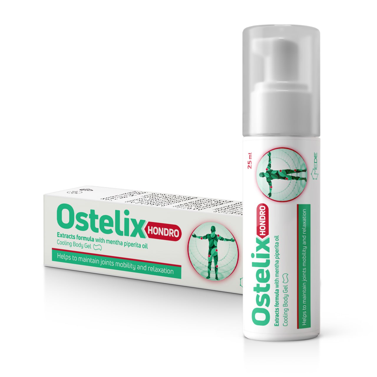 Ostelix Hondro je gel určený k lokální aplikaci, který poskytuje cílenou péči o klouby a okolní pokožku. Pomáhá zmírnit nepříjemné pocity spojené s přetížením kloubů, podporuje regeneraci chrupavkového tkaniva a zlepšuje pohyblivost. Díky kombinaci přírodních a aktivních složek působí nejen regeneračně, ale také zklidňujícím způsobem, čímž zvyšuje komfort při každodenních aktivitách a podporuje dlouhodobé zdraví kloubů.